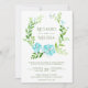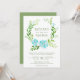 Convide seus convidados com este elegante convite de casamento, com uma bela coroa floral em fundo branco. Basta adicionar os detalhes do seu evento neste modelo fácil de usar para torná-lo um convite de tipo único. Sacudir a carta para revelar um adorável padrão verde e branco de pontos na parte de trás da carta.