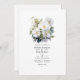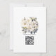 Convite de casamento floral branco. Ideal para um casamento no jardim. O código QR no verso direciona para o seu local de casamento onde o pessoas pode aprender mais e rsvp.