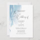 Este elegante design moderno apresenta um fundo de aquarela azul com contornos de folhas em branco. É lindamente combinado com uma caligrafia incrível. Este convite é perfeito para o seu dia especial.