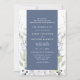 Aprecie amigos e família com este belo convite para o casamento. Design com uma elegante cor-de-água verde e flores brancas e azuis formando uma banda elegante de cor azul mostrando seus detalhes de casamento. Estilo elegante e clássico com uma redação tradicional com os nomes dos pais. Volte no mesmo tom azul que a banda na frente. Também disponível em azul empoeirado, ou em branco com floral. Parte de nossa coleção "Elegant Bliss" com uma variedade de convites coordenadores, inserções de cartões, placas RSVP, acessórios de correspondência, salvamento de datas, cartas de agradecimento e placas de eventos e produtos.