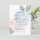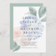 Este elegante convite de casamento floral branco de hydrangea azul esmaecido é perfeito para um primavera ou casamento de verão. O clássico design floral apresenta faixas de cor azul-d-água de pó macio, acentuadas com flores cor-de-rosa e cor-de-rosa com pincel neutro e folhas verdes sobrepostas com o seu texto.