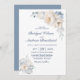 Convide seus amigos e entes queridos para o seu casamento para testemunhar e celebrar o início de sua jornada ao longo da vida com este elegante convite de casamento floral azul e branco. O texto personalizável permite adicionar sem esforço seus nomes, data de casamento e os detalhes necessários de sua celebração. Uma variedade de tipos de papel e estilos de canto estão disponíveis para seus convites exclusivos, juntamente com a opção de download se você preferir um formato digital.