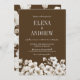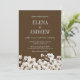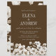 Este elegante convite de casamento floral castanho e branco cai e flores de inverno. Fundo castanho mostrado com texto branco e flores para casamentos brancas. O fundo de grandes florais brancos é opcional. Todo o texto, incluindo nomes, pode ser alterado.