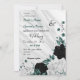 Convites casamento floral branco e negro azul teal