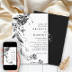 Convite para casamento floral branco e preto elegante. Ponha o tom perfeito para o seu casamento com este convite floral brilhante, preto e branco. A design romântica, com flores delicadas, cria um visual cativante. A tipografia clássica acrescenta uma elegância eterno, fazer este convite adequado para celebrações tradicionais e modernas. Suas iniciais são mostradas elegantemente no verso em branco contra um fundo preto em negrito, garantindo uma primeira impressão memorável e impactante.