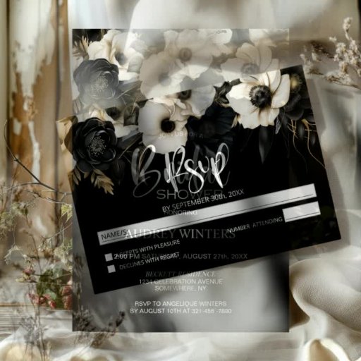 Convites Casamento Floral Branco e Negro Moderno