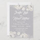 Casamento elegante de flores brancas e prateadas, Esta cinza branca e prata é uma design única com flores brancas penduradas em cima e em baixo. Sua design pode ser personalizada com seu próprio texto. A imagem no verso pode ser removida se você desejar.