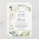 Com um popular esquema de cor neutra de rosas brancas e hidrangeas com eucalipto e verde à direita, este convite único para o casamento tem um código QR no verso do convite para todos em um para fornecer informações sobre seu site de casamento. Convidados de casamento podem RSVP e ver todos os detalhes em torno de seus eventos de casamento, agenda, acomodações de hotel, informações de recepção e muito mais. O convite econômico "tudo em um" tem todas as informações contidas no convite para não exigir RSVP ou cartão de gabinete. As flores neste design popular incluem rosas de aquarela macia, híbridos e flores misturadas em uma coroa aberta ao redor do seu texto. Os emparelhamentos de texto usados neste layout apresentam os nomes da noiva e do noivo usando um rosto de tipo manuscrito misturado a um serifa sempre popular. Personalize o modelo de texto fácil com seus detalhes de casamento.