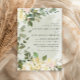 Este elegante convite de casamento de aquarela apresenta tons verdes macios com sotaques florais amarelos e pincelados, criando um olhar romântico e eterno. As delicadas ilustrações botânicas enquadram o texto de forma elegante, enquanto as fontes modernas de serifa e escrita à mão fornecem um equilíbrio refinado do estilo clássico e contemporâneo. Perfeito para primavera ou casamentos de verão, esta design dá o tom para uma celebração alegre cercada pela beleza da natureza.
