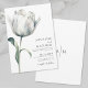 Monograma Moderno Elegante Convite Floral Branco Negro para Casamento. Este convite de casamento elegante e mínimo apresenta uma tulipa branca de solteiro aquarela com um caule verde e folhas. O plano de fundo padrão é branco, mas também parece impressionante com um fundo preto e fontes brancas. Uma mistura refinada de serifas clássicas e fontes delicadas de script dá a esta design um eterno e um sentimento romântico — perfeito para casamentos modernos, simples celebrações de países ou cerimônias de jardim. Todas as cores da fonte podem ser personalizadas. O verso apresenta um simples monograma inicial. Disponível como um convite impresso ou um ficheiro digital transferível para correio eletrônico ou impressão localmente.