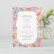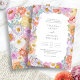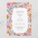 Convite De Casamento Floral De Aquarela Brilhante. Este convite de casamento explode com cor e beleza floral, fazer a escolha perfeita para casais planejando um evento de primavera, verão ou outono caprichoso. A frente apresenta florais ousados, pintados à mão — peônias brilhantes e brilhantes de fúcsia, flores amarelas laranja e ouro, rosas roxos lavandas, delfinium azul, margaridas e flores silvestres — dispostos em um design vivo e romântico, completo com um sotaque charmoso de borboletas. Um padrão floral correspondente no verso adiciona um toque polido e coeso. Comece a comemorar com um design que reflete a alegria e a vibração do seu grande dia — dê vida a essa ousada beleza floral com seus detalhes.