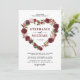 Convites de casamento elegantes com um coração floral em aquarela vermelho marsala, borgonha e rosa desmaiado, e um modelo de casamento moderno.