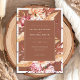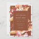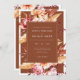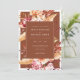 Crie seus próprios convites personalizados de casamento com design floral elegante. Adicione seus detalhes personalizados de seu dia especial em tipografia quic minimalista. Este convite para o casamento mostra boho chic fall floral of watercolor dahlia , flores e folhas botânicas de outono sobre fundo cor de laranja queimado.