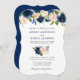 O Convite para Casamento Floral Clássico Azul e Blush Cor-de-Água Elegante Moderna inclui rosas rosa azuis e verde-verde. Estilo do suporte.
