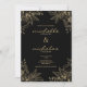 Uma caligrafia manuscrita com um convite de casamento floral elegante, preto de luxo e ouro. Estes convites clássicos de preto e ouro são perfeitos para qualquer garota de vidro elegante e sofisticada. Este design é perfeito para um evento de tendências e na moda. Design com a sua própria mensagem e informação. Todas as designs são impressas.