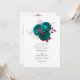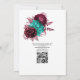 Convite de casamento floral turquesa-teal e borgonha trendy. Ideal para qualquer tema ou casamento no jardim. O código QR no verso direciona para o site do seu casamento, onde as pessoas podem saber mais e responder.