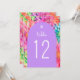 Números de Tabela de Casamento Floral de Cor de Água Tropical Moderna Colorida Apresentam flores tropicais coloridas de cor aquosa em rosa, roxo, laranja, verde e turquesa. Adicione seu número de tabela personalizado em tipografia de script de caligrafia branca elegante. Personalize editando o texto nas caixas de texto. Projetado para você pelo Evco Studio www.zazzle.com/store/evcostudio
