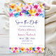 Avise seus amigos e família sobre seu dia especial em estilo com esse cartão de casamento floral colorido. Os modelos de texto fáceis de usar tornam a adição de todas as informações necessárias uma tarefa rápida e simples. Com uma variedade de tipos de papel e estilos de canto para escolher, você pode criar placas verdadeiramente exclusivas que reflitam sua individualidade, juntamente com a opção de baixar se preferir um formato digital.