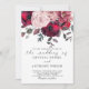 Um belo cartão de Boho floral com flores de burgundy e aquarela. Esta modelo é para informações de casamento, como acomodação, instruções e outros detalhes que você pode querer que seus hóspedes saibam.