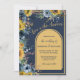Convites Casamento Floral com Girassóis Azul-Marinho
