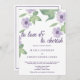 Um clássico roteiro elegante de na moda, caligrafia tradicional, branca, lavanda, verde-menta, lilás e convites para casamentos florais de cor-d-água roxa. Este convite de casamento de flores botânicas é perfeito para qualquer garota chique sofisticada. Este design é ideal para um evento de festa elegante e de tendências. Personalize este design com sua própria mensagem e informações personalizadas. Todas as designs são impressas.