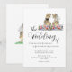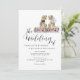 Se você e seu noivo amam dinossauros, aqui está um convite de casamento divertido com tema de dinossauros, com noiva e noivo dinossauros em pé em um prado colorido de flores silvestres em aquarela. Fácil de personalizar com os nomes dos noivos, data do casamento e todos os detalhes. Ilustrações engraçadas de dinossauros noiva e noivo T-Rex com tipografia moderna e caprichosa. Arte original e única da artista Catherine Sweetman