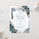 Este convite romântico de casamento apresenta um belo design floral azul de aquarela, complementado por fontes elegantes de caligrafia. As cores suaves do pastel e o tema rústico criam um olhar encantador e convidativo, perfeito para um casamento no jardim ou no exterior. Os sotaques Dourados acrescentam um toque de sofisticação, melhorando a elegância geral do cartão. Ideal para casais que buscam um design moderno, mas eterno, este convite dá o tom para uma celebração romântica e na moda de casamento. Os detalhes são cuidadosamente elaborados para criar um layout harmonioso e visualmente atraente, fazer-o como uma lembrança memorável para o seu dia especial.