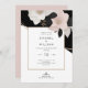 O convite de casamento inspirado pela Elegante Chanel, com flores cor-de-rosa e folhagem esbranquiçadas contra um dramático pano de fundo preto. Criar uma mistura de luxo, sofisticação e romance.