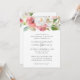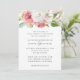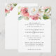 Caracteriza um design floral de jardim em aquarela elegante em tons de rosa, rosa e branco com folhagens e destaques em teal. O verso do convite é emoldurado em florais de jardim correspondentes. Design©Rosalind Moore, Cherry Lane Designs.