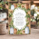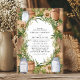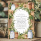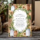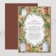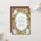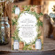 Este convite de casamento rústico apresenta uma mistura encantadora de jarros de pedra, sacaria e uma coroa de folhagens contra um fundo de madeira quente. As flores brancas suaves e tons terrosos criam uma atmosfera acolhedora e rústica, tornando este design perfeito para um casamento em um celeiro ou ao ar livre. A fonte serifada elegante dentro da coroa rústica adiciona um toque de sofisticação, ideal para casais que buscam uma mistura de charme rústico e estilo refinado.