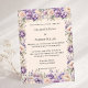 Convide seus entes queridos com estilo com este convite temático de casamento Lavanda Champanhe. O design apresenta lavanda em aquarela exuberante e flores delicadas de cor creme emoldurando um fundo de champanhe quente e sofisticado. Este conjunto floral é uma escolha ideal para casais que planejam uma cerimônia romântica de jardim no final do verão ou uma celebração elegante de colheita de outono.