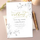 Ramais de orquídeas brancas, desenhadas à mão em lápis de grafite, entrelaçam neste simples, mas sofisticado, elegante e chic modelo de convite para o casamento floral. Um clássico moderno que se desenhar em elementos tradicionais, além de novos, modernos e distintos, como a simples tipografia e a discreta estrutura dourada. A caligrafia moderna com amplas flores é feminina e romântica. Procure outras designs na suíte "White Orchid Dream".