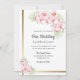 Um convite de casamento elegante com orquídeas cor-de-rosa e uma fronteira assimétrica de ouro na moda.