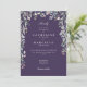 Um elegante convite floral de flores silvestres a aquarelas que enquadra seus detalhes de celebração de casamento em uma tipografia branca elegante em um fundo na moda roxo. Projetado por Thisnotme©