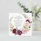 Um design de casamento floral com uma coroa floral com texto no meio e adorável pêssego, ameixa e flores roxas de aquarela.