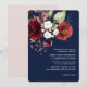 Convite de casamento clássico em azul naval e rosa blush com bouquet de flores de aquarela em vinho borgonha e flores florais rosa blush com fonte serifada clássica. Itens correspondentes nesta coleção.