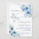 Este convite moderno apresenta flores de aquarelas graciosas em tons azuis suaves, balanceados por tipografia limpa e contemporânea. Perfeito para casais que buscam uma estética refinada e romântica com esquema de cores frescas.