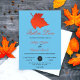 Este elegante convite de casamento outono é perfeito para um casamento moderno no outono. A simples design apresenta folhas vermelhas de queda com elegante tipografia negra e vermelha sobre fundo azul-céu