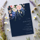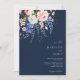 Convite de casamento moderno e minimalista, com uma simples tipografia elegante e um fundo azul de cor azul de design floral de flor selvagem no marinho.
