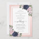 Marinho personalizado, azul e blush, convite de casamento floral com uma fonte moderna. Personalize facilmente este elegante cartão de casamento, com rosas azuis e embaçadas. Itens correspondentes disponíveis.