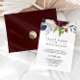 Este marinho de burgdy moderno, blush de casamento floral é perfeito para um casamento simples. A design apresenta flores vermelhas, burladas, marinhos, roxas, azuis e esbranquiçadas lindamente pintadas à mão e folhas verdes.