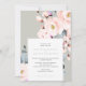 Um design elegante para um casal elegante. O design apresenta uma aquarela floral com eucalipto e outra ilustração foliar em pincel e pop de azul empoeirado e roxo sobre um fundo de areia cinza. O desenho é finalizado no reverso com uma cinza de areia e um monograma.