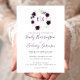 Esta design de casamento apresenta as iniciais da noiva e do monograma do noivo em roxo escuro, moldadas por uma camada aquosa de flores roxas e roxas e folhagem verde. Personalize o texto com os nomes dos casais em um guião elegante de escrita manual roxa e os detalhes do casamento em cinzas de carvão. O lado inverso é um tom sólido de roxo.
