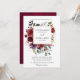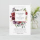 O convite para o casamento floral romântico elegante e moderno de aquarelas apresenta um buquê de burgundy / marsala, rosa-pincel, cor de pêssego com folhagem correspondente. Perfeito para um casamento no outono/no meio do verão. Por favor, encontre mais designs e variações na minha loja de "blisswedingpaperie". E fique à vontade para me contactar para mais personalizações ou itens correspondentes.