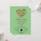 Este elegante convite de casamento outono é perfeito para um casamento moderno no outono. O simples design apresenta um coração colorido de folhas de outono com tipografia elegante, preta e vermelha, sobre fundo verde-sábio