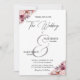Um convite de casamento elegante com flores cor-de-rosa poeirentas e caligrafia elegante que você pode personalizar com seus detalhes.