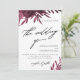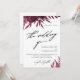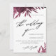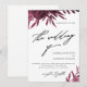 Flores românticas burgundy com elegante caligrafia, convite de casamento contemporâneo com branco de fundo.