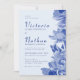 Convites Casamento Floral de Chinoiserie Azul e Retro Moder