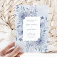 Estes bonitos, azuis claros e azuis poeirentos convites para casamentos apresentam uma vintage azul aquarela estrutura floral com lindas folhas botânicas e flores, e na moda caligrafia junto com texto clássico. Uma sutil camada azul de aquarela decora o fundo azul claro. O design de toile azul francês acrescentará um toque romântico e elegante à sua papelaria de casamento.