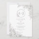 Um convite de casamento moderno e minimalista que inclui esboços florais de cinzas elegantes e iniciais monográficas personalizadas num quadro geométrico. Perfeito para casamentos chic, formal, jardim, rústicos ou elegantes. A paleta de cores neutra e o layout limpo criam um visual de estoque de casamento sofisticado e eterno.